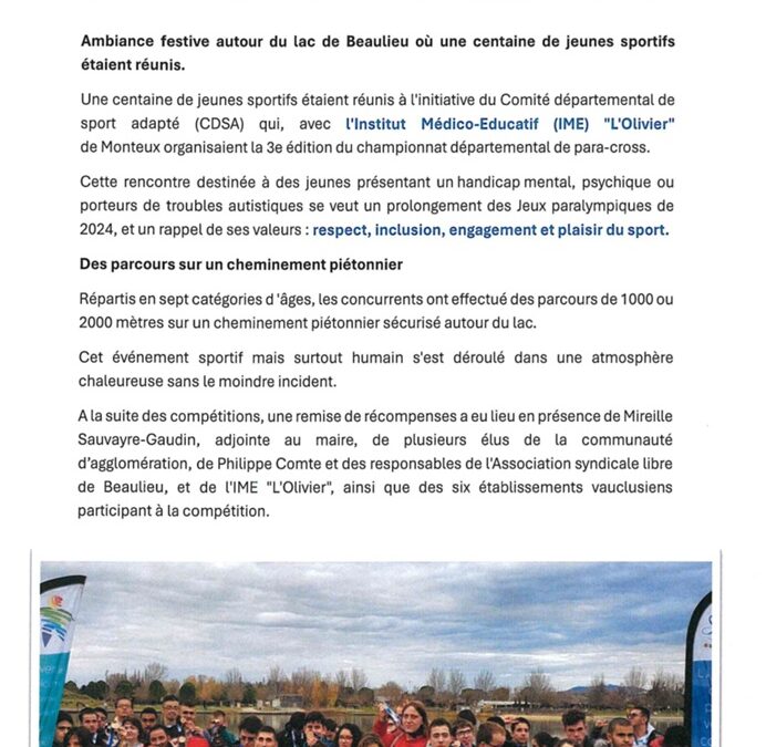 Comme l’a récemment relayé La Provence, près d’une centaine de jeunes sportifs se sont réunis à l’initiative du CDSA – Comité Départemental du Sport Adapté, témoignant du dynamisme et de l’enthousiasme qui animent le handisport sur notre territoire. Cet événement a mis en lumière bien plus qu’une rencontre sportive : il a révélé l’engagement profond des jeunes, notamment ceux issus des IME, ainsi que l’implication constante des équipes éducatives et encadrantes.